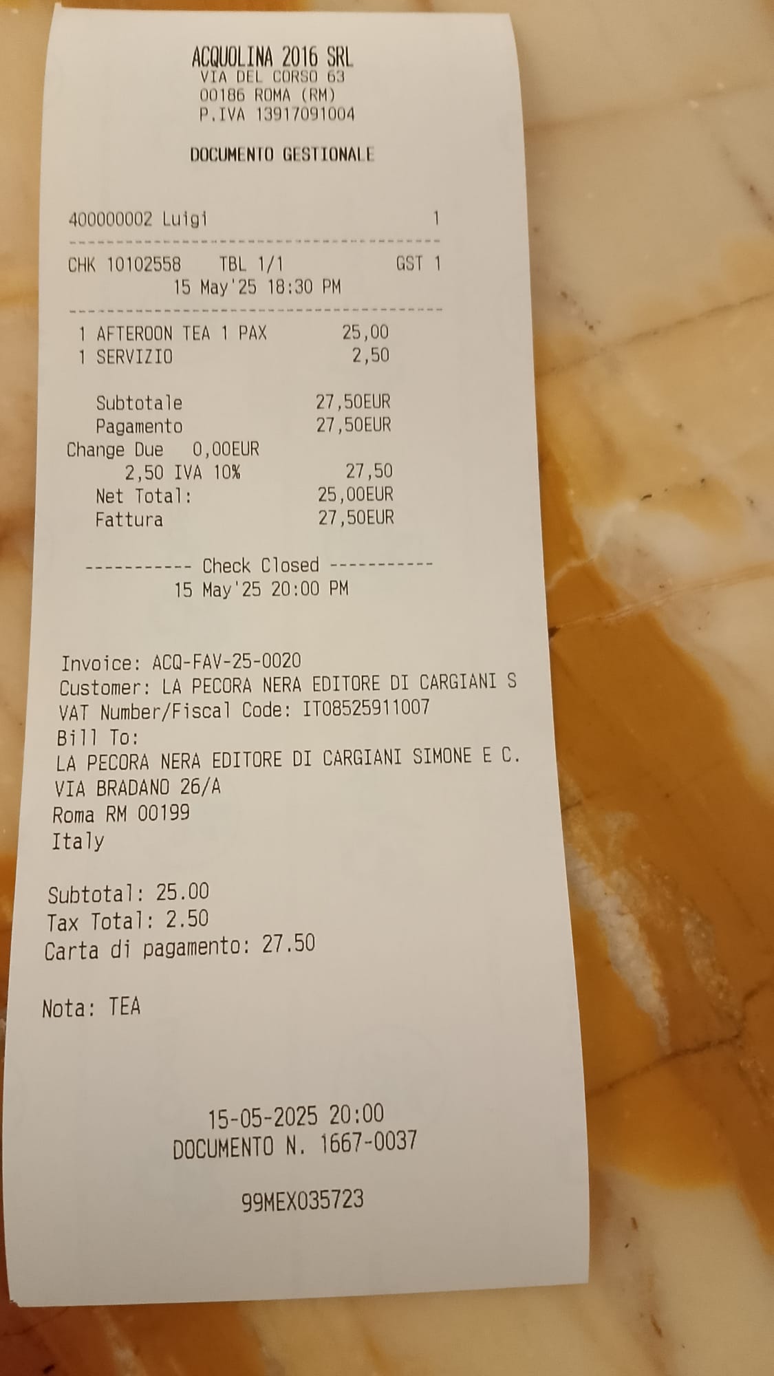 MerkleRoot del certificato